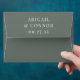 Elements: watercolor mountain scene with elegant, contemporary serif fonts. Colours: green, hunter green, highland green, white, white mist, grey, slate. Themes: modern, outdoor wedding, mountains, rustic, woodsy, outdoorsy, forest, woodland, nature, hiking, rocky mountains, sierra nevadas, blue ridge mountains, smokey mountains. Collection: Evergreen Mountain Mist Rustic Winter Wedding Collection. Product Type: Envelope