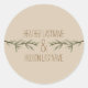 An outdoors evening wedding sticker featuring an illustration of two evergreen tree branches. Personalise the text with your names.