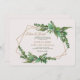 Artistically arranged, beautiful greens and two interlocking "gold" frames surround the wording of your event in this elegant wedding invitation. This card is featured on LINEN paper, MATT finish and rounded corners. Want to save money? Order the card with basic card stock, semi-gloss finish and square corners. (<a href="https://www.freepik.com/free-photos-vectors/background">Background vector created by rawpixel.com - www.freepik.com</a>). The card is easy to customise with your wording, font, font colour and choice of six paper types.<br/><br/>Not exactly what you're looking for? All our products can be custom designed to meet your needs at no extra charge.<br/><br/>Simply contact us at askcottonlamb@gmail.com<br/><br/>Coordinating products available: Evergreen RSVP Cards.
