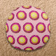 Seamless pattern of Everlasting flower with deep pink petals and yellow disc printed on round throw pillow. Floral design pillow for lovers of flowers and to add the beauty of nature on your chair, couch, sofa, in your bedroom or living room. You can also give it as a gift.