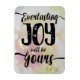 Black Typography design emblem with vintage distressed script lettering and words, "Everlasting Joy will be Yours." Background is sparkling stone texture with gold and pastel pink colours.