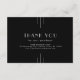 This sleek black small business thank you order enclosure card from the Everly Collection features crisp white type, geometric art deco accents, and editorial spacing. The simple thin triple-line motifs frame elegant text for a refined, modern minimalist, evening-ready look.