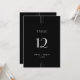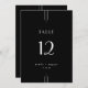 This sleek black wedding table number from the Everly Collection features crisp white type, geometric art deco accents, and editorial spacing. The simple thin triple-line motifs frame elegant text for a refined, modern minimalist, evening-ready look.