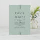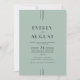 This refined art deco double sided wedding invitation from the Everly Collection features geometric line accents and retro typography on muted sage green. It’s minimal yet glamourous and ideal for modern weddings with vintage flair.