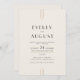 This refined art deco wedding invitation from the Everly Collection features minimalist black typography and gold line accents on a soft cream background. It's perfect for an elegant, timeless look.