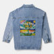 This is a blue women's denim jacket. The design on the denim jacket was created with artificial intelligence art. The artwork features an enchanting meadow with blooming flowers and a whimsical tree in the style of Van Gogh's swirling skies. This is a whimsical Earth Day design with vibrant colours blending post-impressionism and abstract art. The colourful design was made for Earth Day. Every Day Is Earth Day is on the design in silver script. You can change the text by clicking the Personalise button.