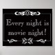 What night is it? It's movie night, of course! If you don't believe me, just check out this "Every Night Is Movie Night" poster. The black and white design features a classic, silent movie, title card with open face, white writing that reads, "Every night is movie night!" This is the perfect gift for film buffs. This poster looks equally at home in a dorm room or home theatre.