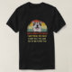 I give wanted to give this a 4 instead of a 5 because these Basic DARK T0shirts run unexpectedly SLIM or Narrow. Which is great if you do not have a potbelly, but I have a paunch. It isn't the shirt's fault that I've got a beer belly. The design and shirt itself is a quality cotton shirt. The color is more of a deep purple, but still a very pretty color. The Basic DARK T-shirts run a bit SLIMMER than the Basic Ts. The neck is a fraction narrower (or seems to be narrower) also. I'm a paunchy middle-aged woman and my neck is 12 inches (31cm) thick and the neckline fell about the same as in the photo of the man, and I had the desire to tug it a bit. So if you're a thick necked man or like loose shirts, be aware these are slimmer shirts. Once I get rid of my lockdown paunch it'll look great. The shirt washed well in cold water with no apparent bleeding. We don't have a dryer, so it hung dry. Did not shrink. Love the colors and the design. The design looks smaller on my shirt than it does on the model on-line. But still, it looks good on the shirt. The printing looks as it does on the model, just the size seems fractionally smaller. Washed garment in cold water, hung dry and design appeared unaffected.