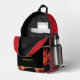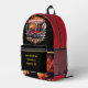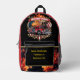 This custom First Responders Firefighters Backpack features A red fire truck with American flag design, firefighters battling a fire, with the words Every Day Heroes. symbolising bravery and heroism,