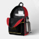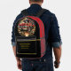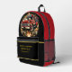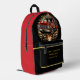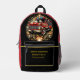 This custom First Responders Firefighters Backpack features A red fire truck with flames bursting from the wheels and a fiery background.