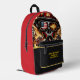 This custom Firefighters Backpack features A close-up illustration of a firefighter wearing a helmet, gas mask, and American flag sunglasses. symbolising bravery and heroism,