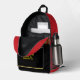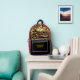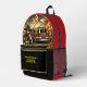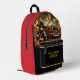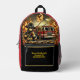 This custom fireman's backpack features A firefighter in full gear stands bravely before a fire truck, flames engulfing the scene. symbolising bravery and heroism,