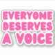 Everyone Deserves a Voice is a powerful statement that promotes equality, inclusivity, and the diversity of voices while advocating for human rights and supporting communities.