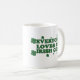 Everyone Loves An Irish Girl mug. The Words Everyone Loves an Irish Girl in green font surrounded by green four leaf clovers. A great gift for St. Patrick’s Day or anyone proud of their Irish heritage.