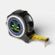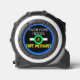Humourous saying Everyone Needs A Tape Measure. Cool white stick and painted look fonts. Fun geometric navy blue outer circle, with black centre. The word A has a smaller bright green circle around it with two white bands on each side. Original Design by TamiraZDesigns.