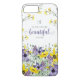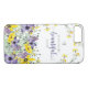 Cell phone case with lovely floral purple and yellow watercolor images surrounding scripture verse from Ecclesiastes 3:11, "He has made everything beautiful in its time." Designed by Simply Scripture; elements from The Hungry JPEG.