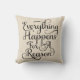 Everything happens for a reason black script font throw pillow. You can easily change the colour of the pillow using the customisation tool.