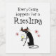 Everything happens for a Riesling! This funny wine quote is for white wine lovers, which you may find strange, coming from The Cabernet Cat. Well, this is actually Blanca, the C.C.'s cousin, who drinks only white wines. (And yes, they do look alike. Blanca's humans have a somewhat ironic sense of humour.) So if you prefer white wines, like Riesling, to reds, this very popular wine pun on a set of six funny wine labels is just for you. Cheers!