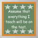 Are you tired of your students asking, "Will this be on the test?" Put a stop to that annoying question by placing this poster in your classroom. The poster displays a picture of a chalkboard and states in white font, "Assume that everything I teach will be on the test."