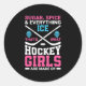 Hockey theme stickers for the hockey girl with hockey pucks, sticks and helmets with pink, white, and blue text that reads Sugar, Spice and Everything Ice That's What Hockey Girls Are Made Of!
