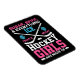 Hockey theme flexible magnet for the hockey girl with hockey pucks, sticks and helmets with pink, white, and blue text that reads Sugar, Spice and Everything Ice That's What Hockey Girls Are Made Of!