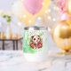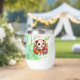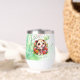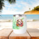 Cute personalised tumbler with cartoon opossums with possum pun. Cute pink possum in flowers. Background is sage green and pink.