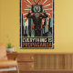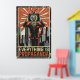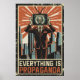 his design is inspired by the 30’s vintage propaganda posters, with a cyberpunk and dystopian twist. It features a man with a suit and an old television for his head, the TV has a clown in it, with the words “EVERYTHING IS PROPAGANDA” in bold letters. The style is screen print, with a limited colour palette of dark, muted, and contrasting tones.