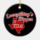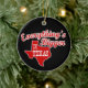 This black ornament contains a red graphic and text in the shape of the state of Texas.