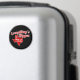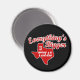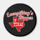 This black magnet contains a red graphic and text in the shape of the state of Texas.