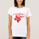 This white women's shirt contains a red graphic and text in the shape of the state of Texas.