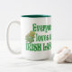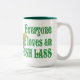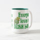 This cute St. Patrick's Day design features a bearded cartoon shamrock smoking a pipe and a green top hat and caption "Everyone Loves an Irish Lass."