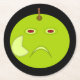 This awesome paper coaster features a cartoon of an evil apple with red eyes and a scowl on its face. The apple has a scar on its cheek where someone has peeled it. This has made the apple very angry and it has set off into the black night to seek revenge.