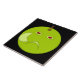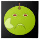 This awesome tile features a cartoon of an evil apple with red eyes and a scowl on its face. The apple has a scar on its cheek where someone has peeled it. This has made the apple very angry and it has set off into the black night to seek revenge.