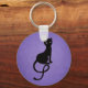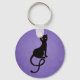 Evil Black Cat Silhouette In Purple Key Ring
