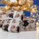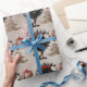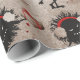 Customisable funny Christmas wrapping paper with a dark textured pattern of evil black bugs who give a Christmas present to someone, on dark vintage textured background. Next to the evil character there is a Christmas tree.