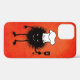 Evil chef iPhone case with a hairy evil bug who loves cooking. The evil character who wears a chef's hat is holding a spatula with and evil grin showing its sharp teeth. This fun illustration has an intense orange textured background.