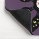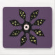 Evil eye monster creepy mousepad with a vector illustration of a weird creature resembling a flower. In its centre there is a big eye with visible blood vessels over dark purple customisable background. On the petals there are many tiny yellow eyes looking to the central eye. This unusual artwork will appeal to a person who likes strange, dark, gothic art.