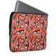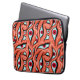 Evil eyes laptop sleeve with a pattern created from a vector illustration of abstract red eyes over intense orange background and wavy lines swirling around them.