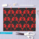 The seamless pattern consists of evil genie hair with flaming red hair and forms the a black body. The head is black with an evil red grin and a striped black; and red dunce cap. The elements of the of the images flow together making it feel a bit strange.