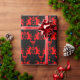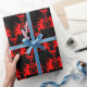 The seamless pattern consists of evil genie hair with flaming red hair and forms the a black body. The head is black with an evil red grin and a striped black; and red dunce cap. The elements of the of the images flow together making it feel a bit strange.