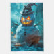 Evil Halloween Snowman with Glowing Eyes Tea Towel