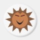 This magnet features a cartoon of an evil brown hedgehog curled up in a ball with sharp brown prickles surrounding it. It has demonic red eyes and a menacing black grin. This simple design will appeal to children and adults alike.