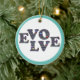 The word "EVOLVE" spelled out with an emphasis on the letters L, O, V. Each letter has words and hearts within them
