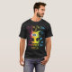 I give wanted to give this a 4 instead of a 5 because these Basic DARK T0shirts run unexpectedly SLIM or Narrow. Which is great if you do not have a potbelly, but I have a paunch. It isn't the shirt's fault that I've got a beer belly. The design and shirt itself is a quality cotton shirt. The color is more of a deep purple, but still a very pretty color. The Basic DARK T-shirts run a bit SLIMMER than the Basic Ts. The neck is a fraction narrower (or seems to be narrower) also. I'm a paunchy middle-aged woman and my neck is 12 inches (31cm) thick and the neckline fell about the same as in the photo of the man, and I had the desire to tug it a bit. So if you're a thick necked man or like loose shirts, be aware these are slimmer shirts. Once I get rid of my lockdown paunch it'll look great. The shirt washed well in cold water with no apparent bleeding. We don't have a dryer, so it hung dry. Did not shrink. Love the colors and the design. The design looks smaller on my shirt than it does on the model on-line. But still, it looks good on the shirt. The printing looks as it does on the model, just the size seems fractionally smaller. Washed garment in cold water, hung dry and design appeared unaffected.