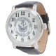 Style: Vintage watch for men with black leather strap This vintage watch for men with leather strap and a large dial will never be out of date. With a 3-needle quartz movement and a genuine leather strap, this classic watch is perfect for formal or casual occasions. Customize the dial with your name and designs for a watch that reflects your style and personality. Men's watch Material: Front: Alloy Bracelet: leather Dimensions: Front: 3,7 cm (diameter) Bracelet: 23,5 cm x 2,2 cm Case: 4,4 cm (diameter) Weight: 52 g. Analog 3-needle Japanese Quartz® Front printed in color Watertight closure up to 3 ATM (30 meters) Limited warranty manufacturer 1 year Pile included This product is recommended from 13 years and older.