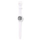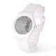 This beautiful white sporty watch is shower proof only. It’s a women’s wrist watch with a comfortable silicon band, and 1 year warranty.
