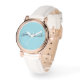 Imagine holding a piece of elegance that not only tells time but also tells your story. The Women's Rose Gold Vintage Watch with white Strap is designed for those who appreciate simplicity and sophistication. Each watch face is adorned with my signature, transforming it from a mere accessory into a unique statement piece. The minimalist design with a robin egg blue face exudes timeless elegance, making it perfect for any occasion, whether a casual day out or a formal event. This watch is crafted with an alloy case featuring a polished and brushed combination finish, and its leather strap ensures comfort and durability. The Japan movement guarantees precise timekeeping, so you’ll never miss a moment. Whether you’re buying it for yourself or as a gift for someone special, this watch is a testament to personal style and elegance. Plus, you can confidently purchase with a 1-year manufacturer’s limited warranty.