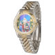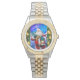 The watch is very nice, the picture is great and the watch looks like quality. The only problem I am having with it is that it is a little too large, and I also can't figure out how to open the clasp. No directions came with it. Very good. The printing is perfect and the watch keeps good time.
