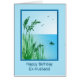 A lovely sea fishing scene. A wonderful birthday card for an ex-husband who loves fishing, or just loves the sea. Tall grasses frame a view of a calm ocean with a small boat and a man fishing. The inside verse has the fisherman's good luck wish 'tight lines'.