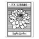 A large 5 x 3.5 inch Ex Libris rubber stamp with a bold linear Chrysanthemum motif. Ex Libris text at the top with editable name text at the bottom in a stylish script font.